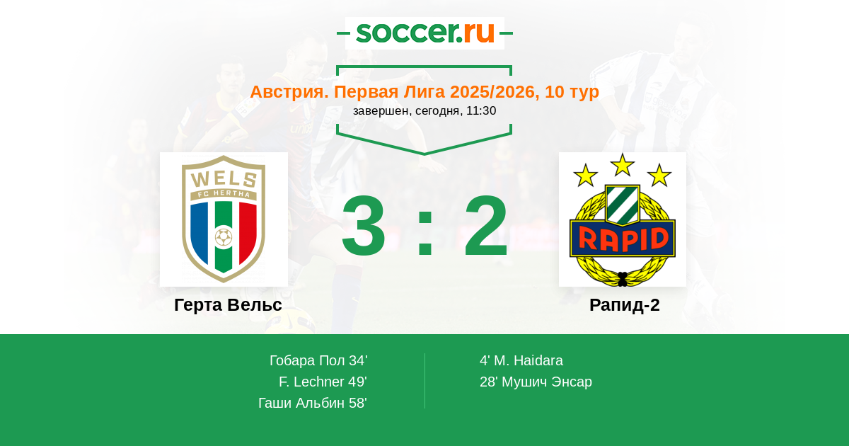 Протокол матча Герта Вельс против Рапид-2