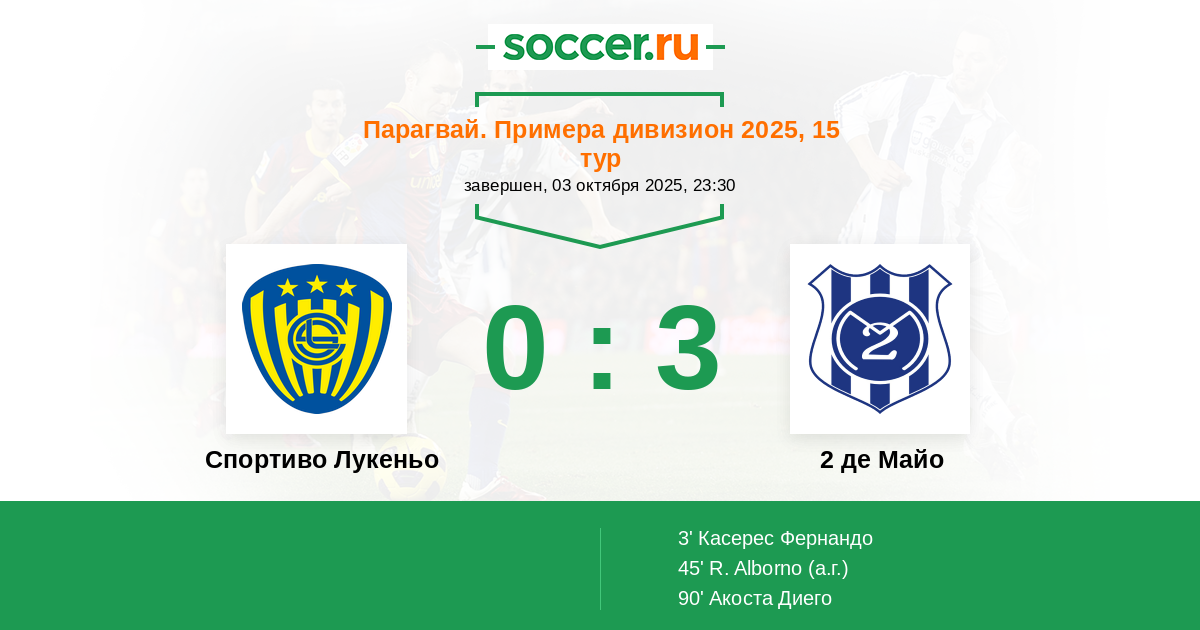 Протокол матча Спортиво Лукеньо против 2 де Майо