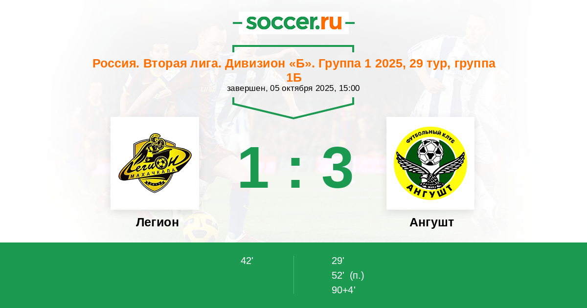 Протокол матча Легион против Ангушт