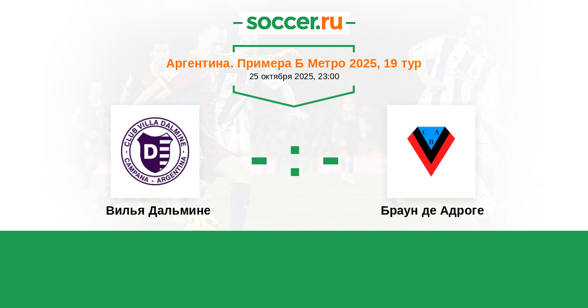 Аргентина. Примера Б Метро 07.06.2025 Браун де Адроге Логотип футбольный клуб Браун де Адроге 4:1 Логотип футбольный клуб Вилья Дальмине (Кампана) Вилья Дальмине