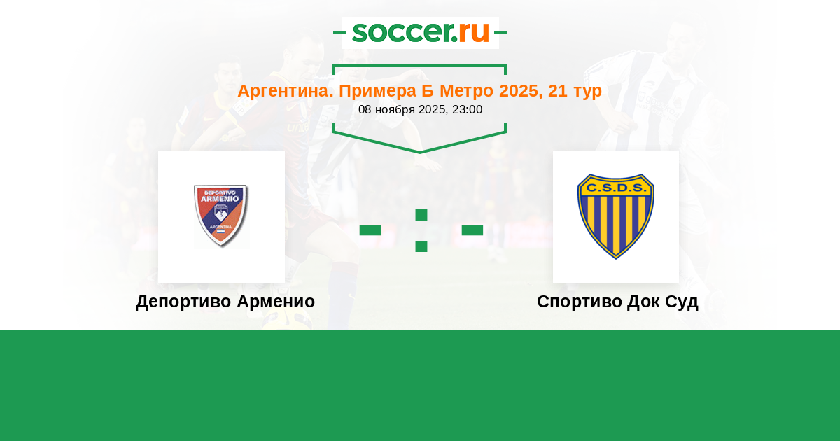 Аргентина. Примера Б Метро 21.06.2025 Спортиво Док Суд Логотип футбольный клуб Спортиво Док Суд (Буэнос-Айрес) 1:0 Логотип футбольный клуб Депортиво Арменио Депортиво Арменио