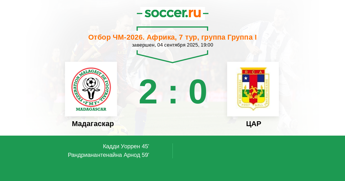 59' (2:0) Рандрианантенайна Арнод (20) (Рахиниана Эль-Хадари (11))