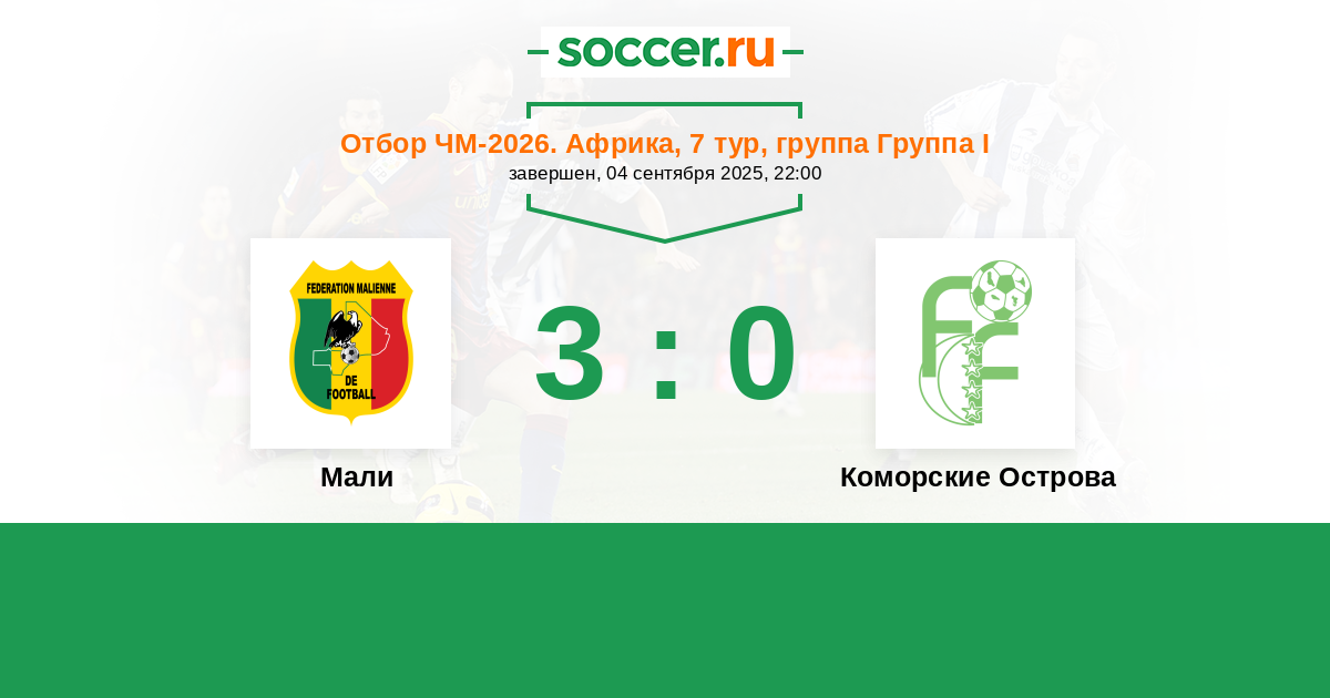 Протокол матча Мали против Коморские Острова