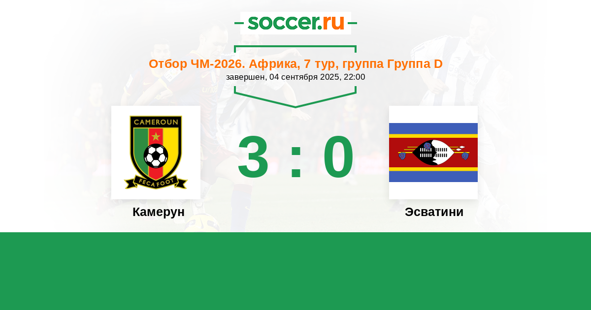 История матча Камерун против Эсватини