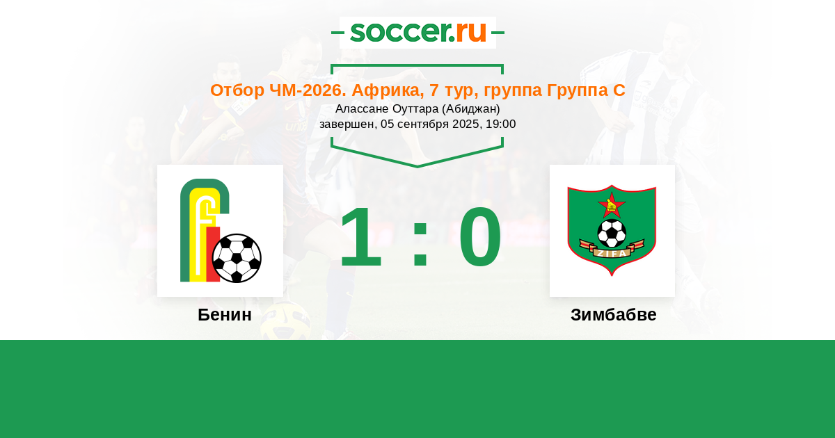 Протокол матча Бенин против Зимбабве