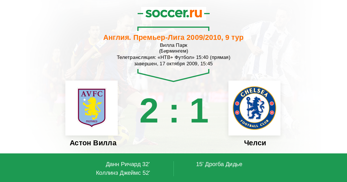 Протокол матча Астон Вилла против Челси