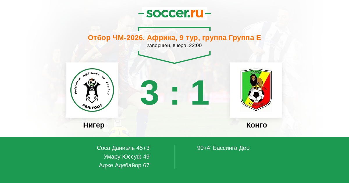 Протокол матча Нигер против Конго