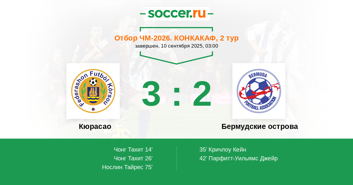 Протокол матча Кюрасао против Бермудские острова