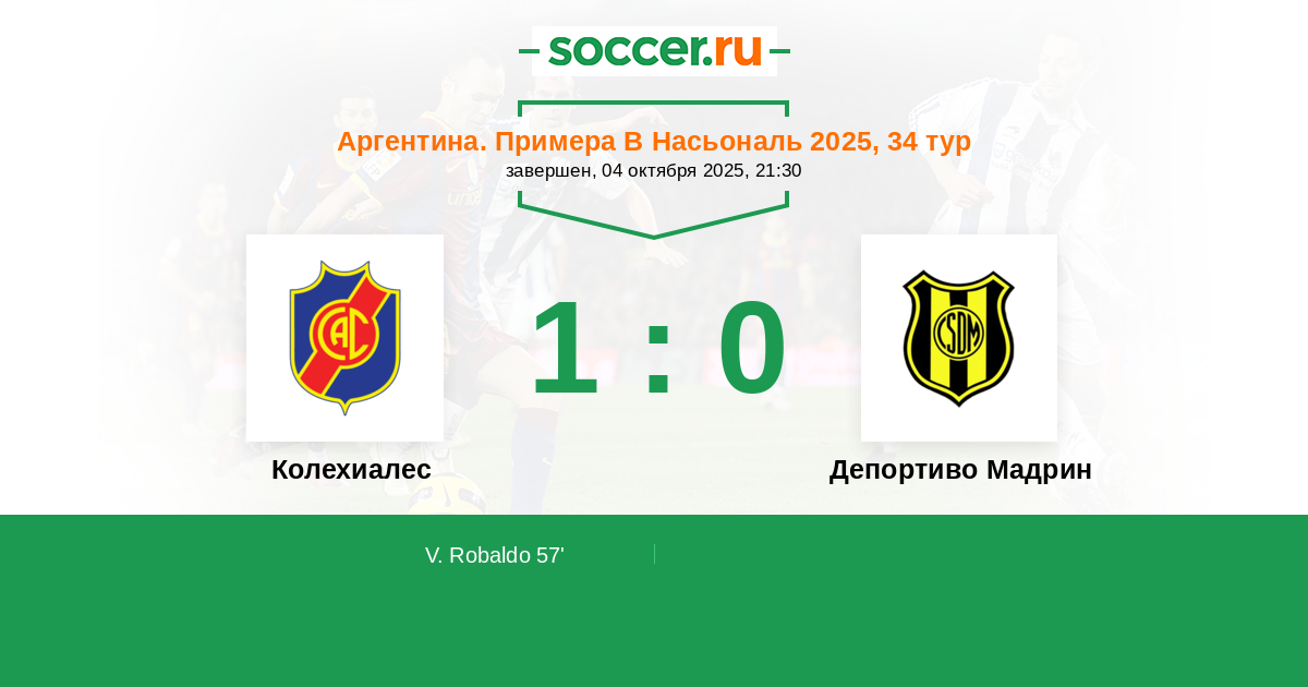 Протокол матча Колехиалес против Депортиво Мадрин