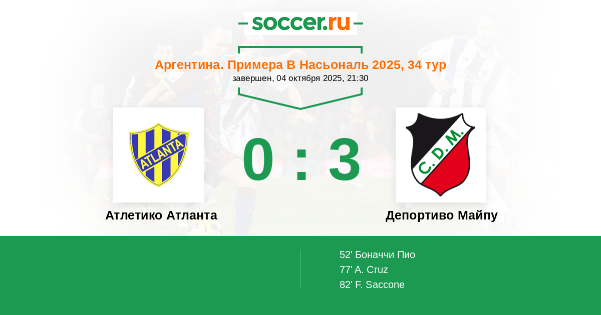 Протокол матча Атлетико Атланта против Депортиво Майпу