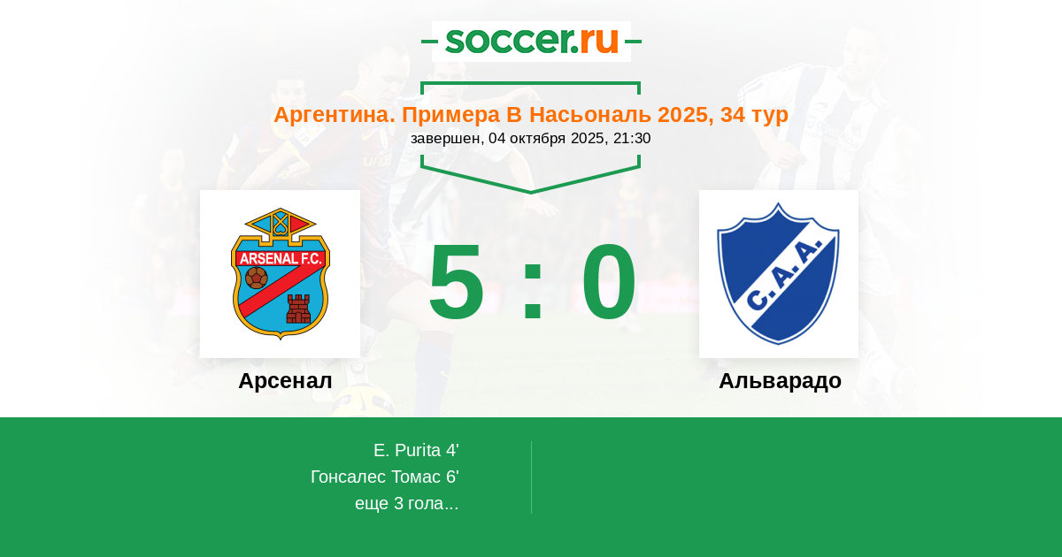 Протокол матча Арсенал против Альварадо