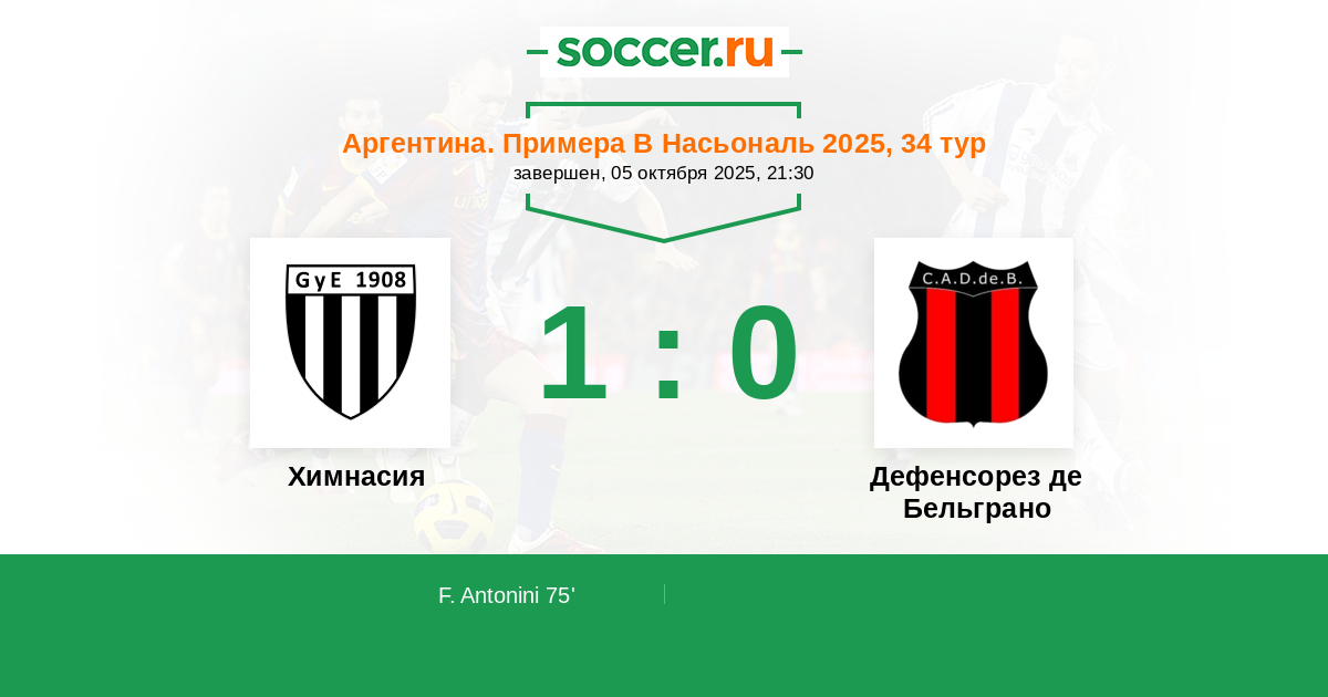 Протокол матча Химнасия против Дефенсорез де Бельграно