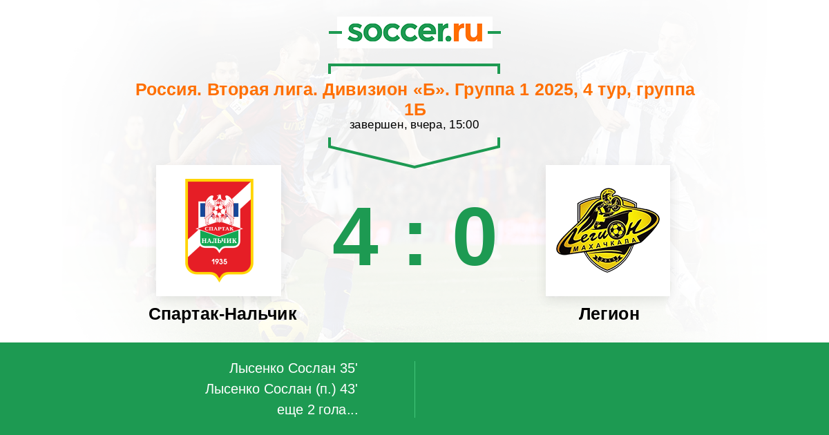 Протокол матча Спартак-Нальчик против Легион