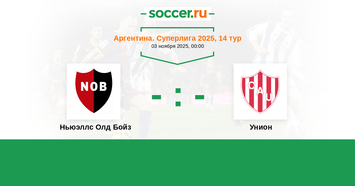 Аргентина. Суперлига 02.11.2024 Унион Логотип футбольный клуб Унион (Санта-Фе) 2:0 Логотип футбольный клуб Ньюэллс Олд Бойз (Росарио) Ньюэллс Олд Бойз