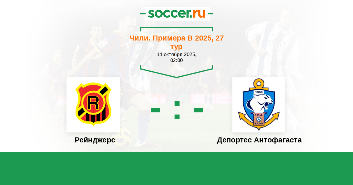 Рейнджерс - Депортес Антофагаста ! Команды примерно равны по силам . Оба клуба ведут борьбу за Плей-офф за выход в лигу выше . Надеюсь на активный обоюдоострый матч . ОЗ .