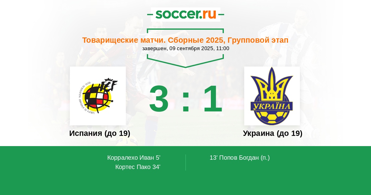 Протокол матча Испания (до 19) против Украина (до 19)