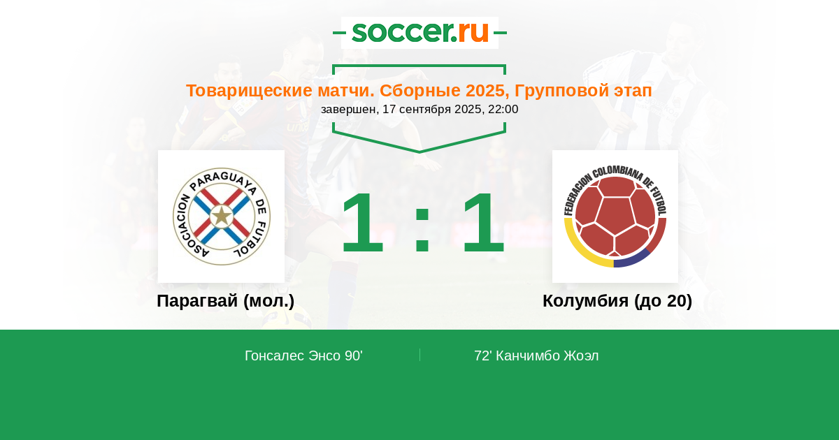Протокол матча Парагвай (мол.) против Колумбия (до 20)