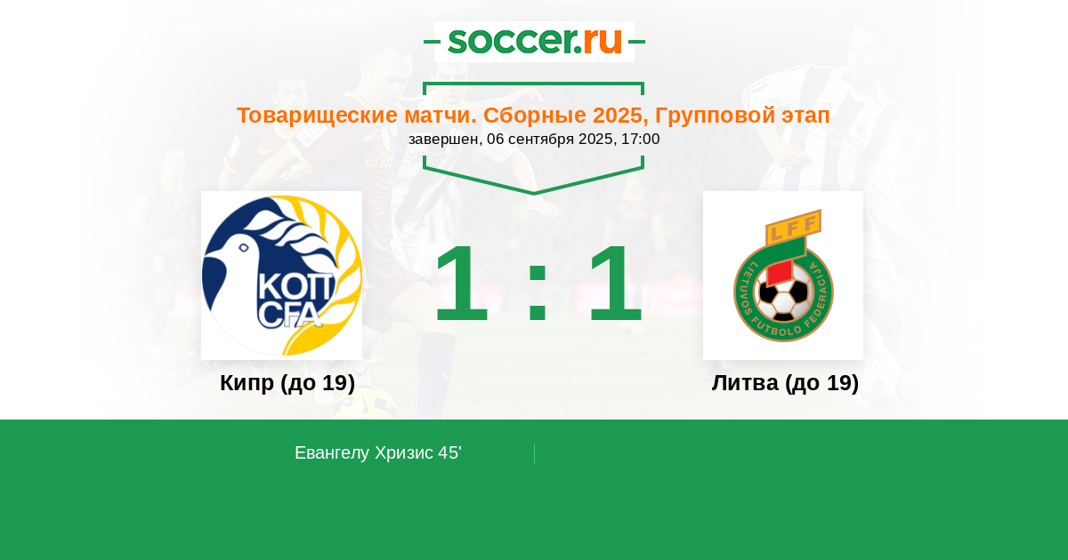 Протокол матча Кипр (до 19) против Литва (до 19)