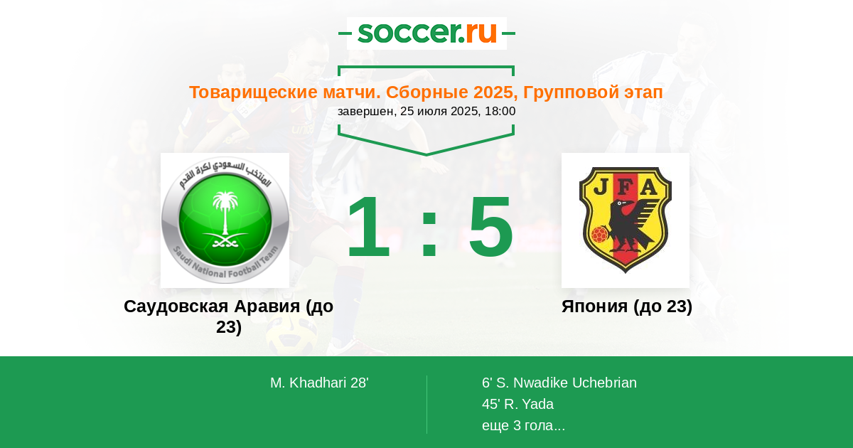 Протокол матча Саудовская Аравия (до 23) против Япония (до 23)