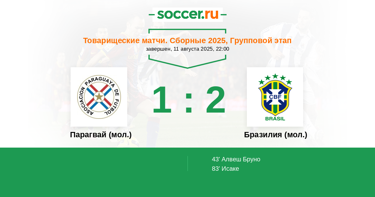 Протокол матча Парагвай (мол.) против Бразилия (мол.)