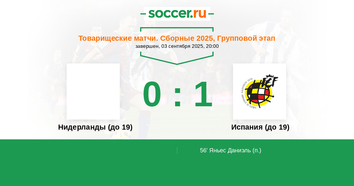 Протокол матча Нидерланды (до 19) против Испания (до 19)