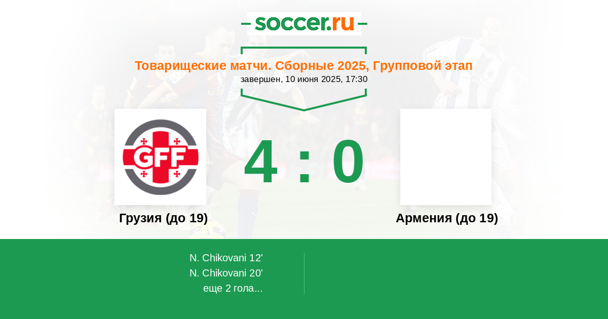 Протокол матча Грузия (до 19) против Армения (до 19)