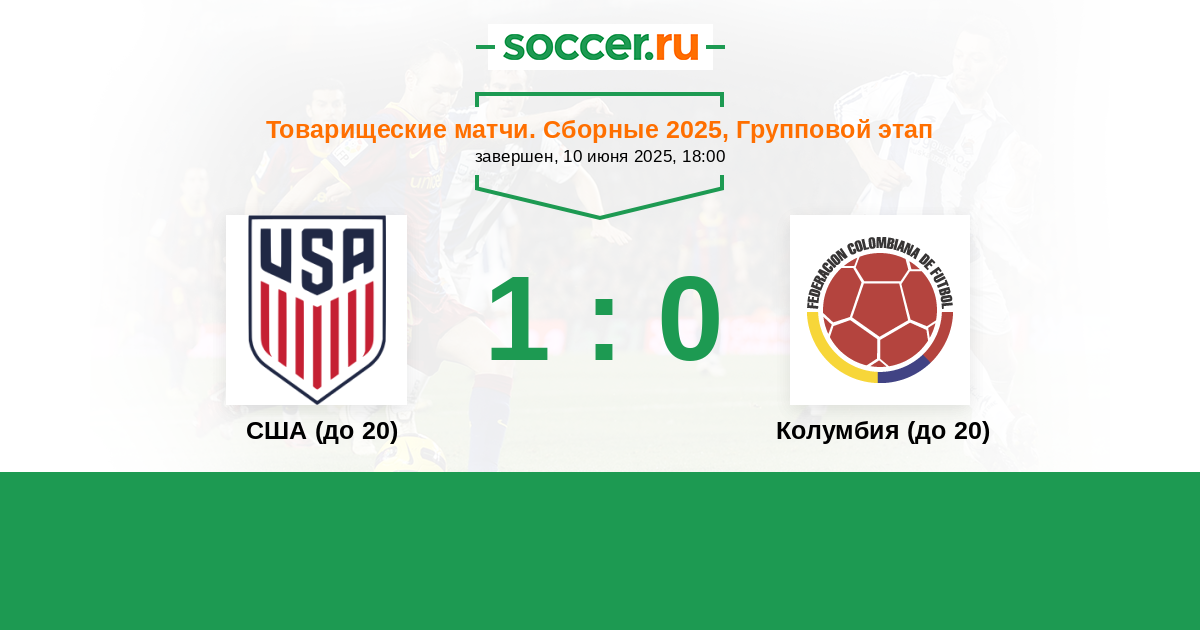 США (до 20) 1:0 1:0 0:0