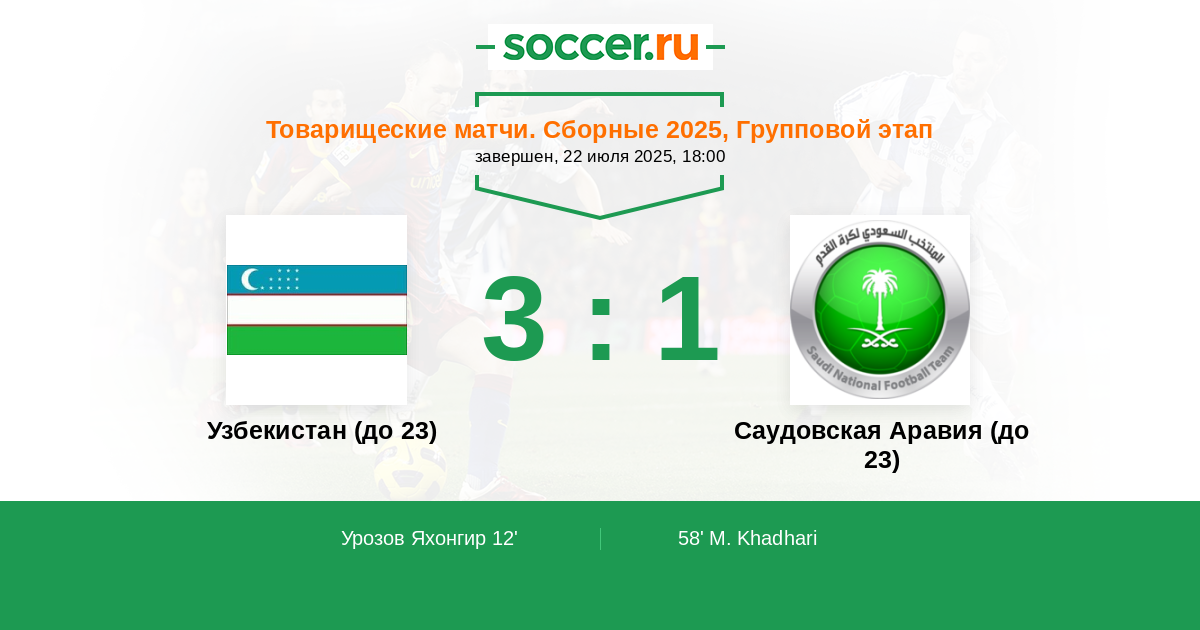 Протокол матча Узбекистан (до 23) против Саудовская Аравия (до 23)