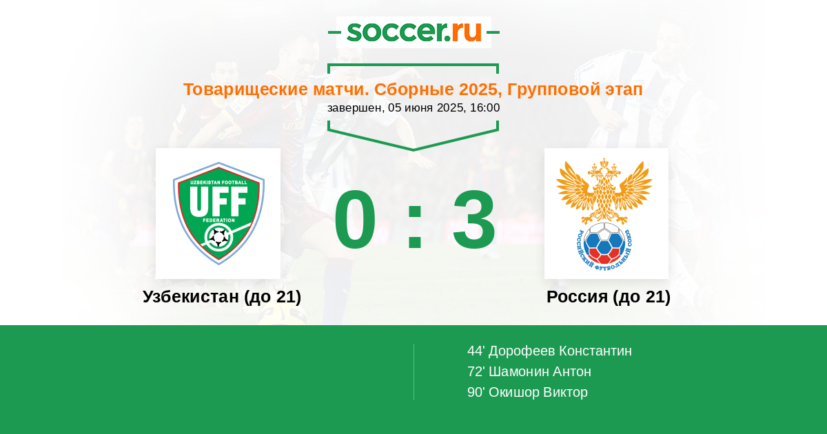 Протокол матча Узбекистан (до 21) против Россия (до 21)