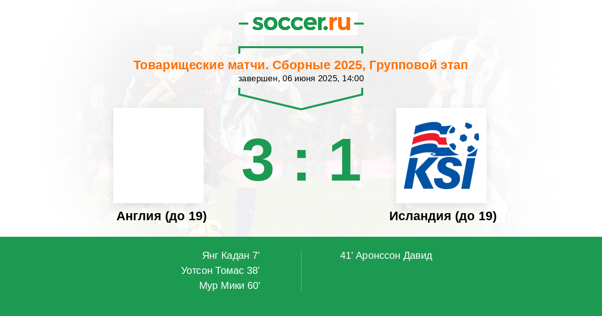 Протокол матча Англия (до 19) против Исландия (до 19)