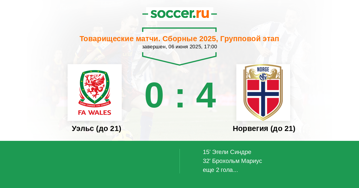 Протокол матча Уэльс (до 21) против Норвегия (до 21)