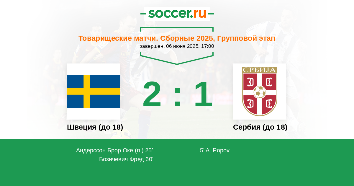 Протокол матча Швеция (до 18) против Сербия (до 18)