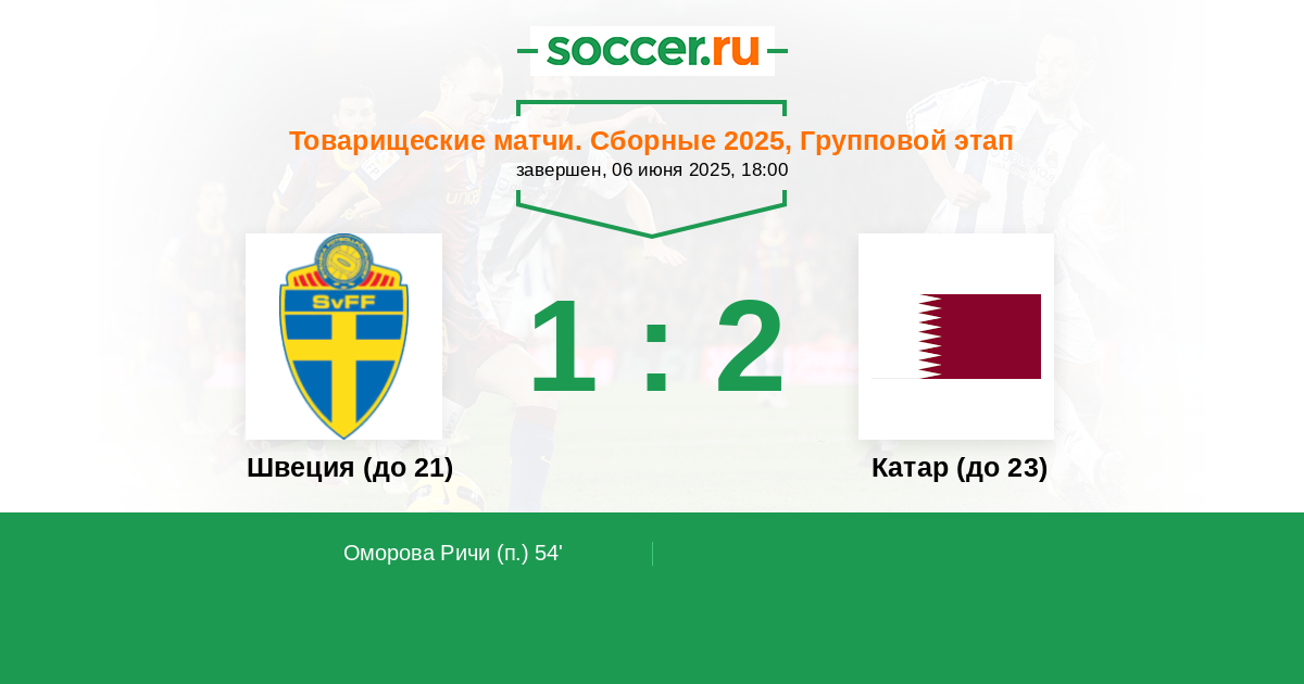 Протокол матча Швеция (до 21) против Катар (до 23)