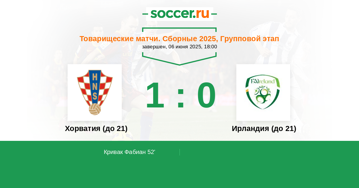 Протокол матча Хорватия (до 21) против Ирландия (до 21)