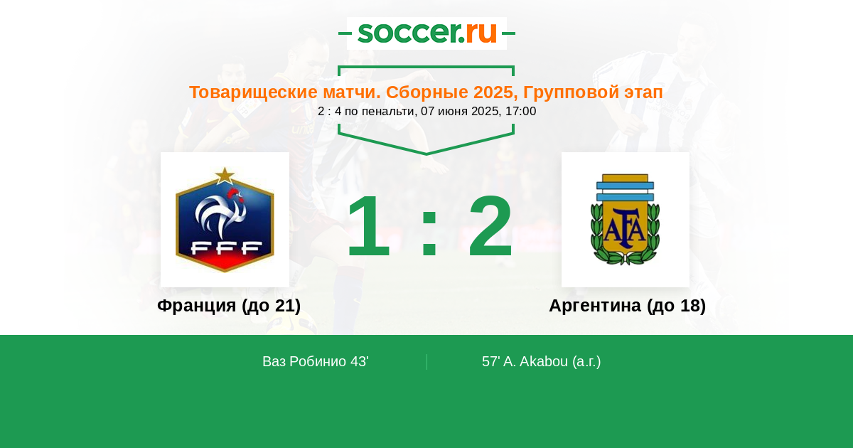 Протокол матча Франция (до 21) против Аргентина (до 18)