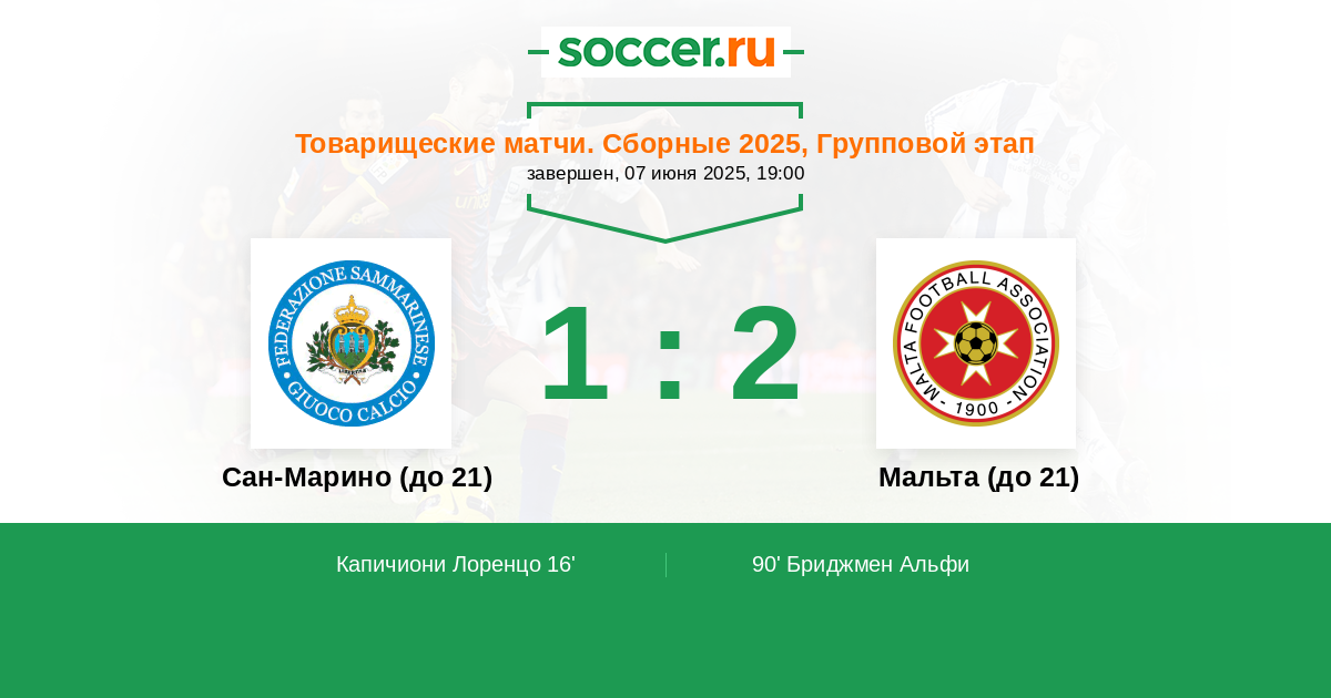 Протокол матча Сан-Марино (до 21) против Мальта (до 21)