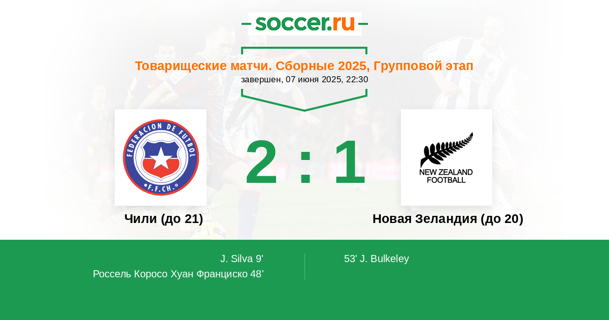 Протокол матча Чили (до 21) против Новая Зеландия (до 20)