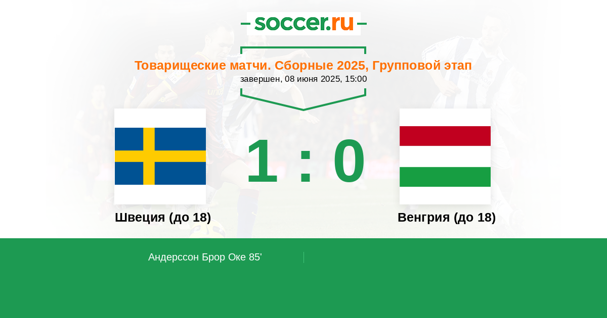 85' (1:0) Андерссон Брор Оке (9)