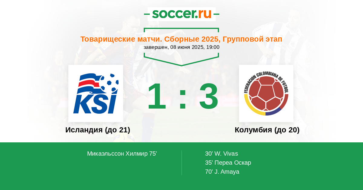 Протокол матча Исландия (до 21) против Колумбия (до 20)
