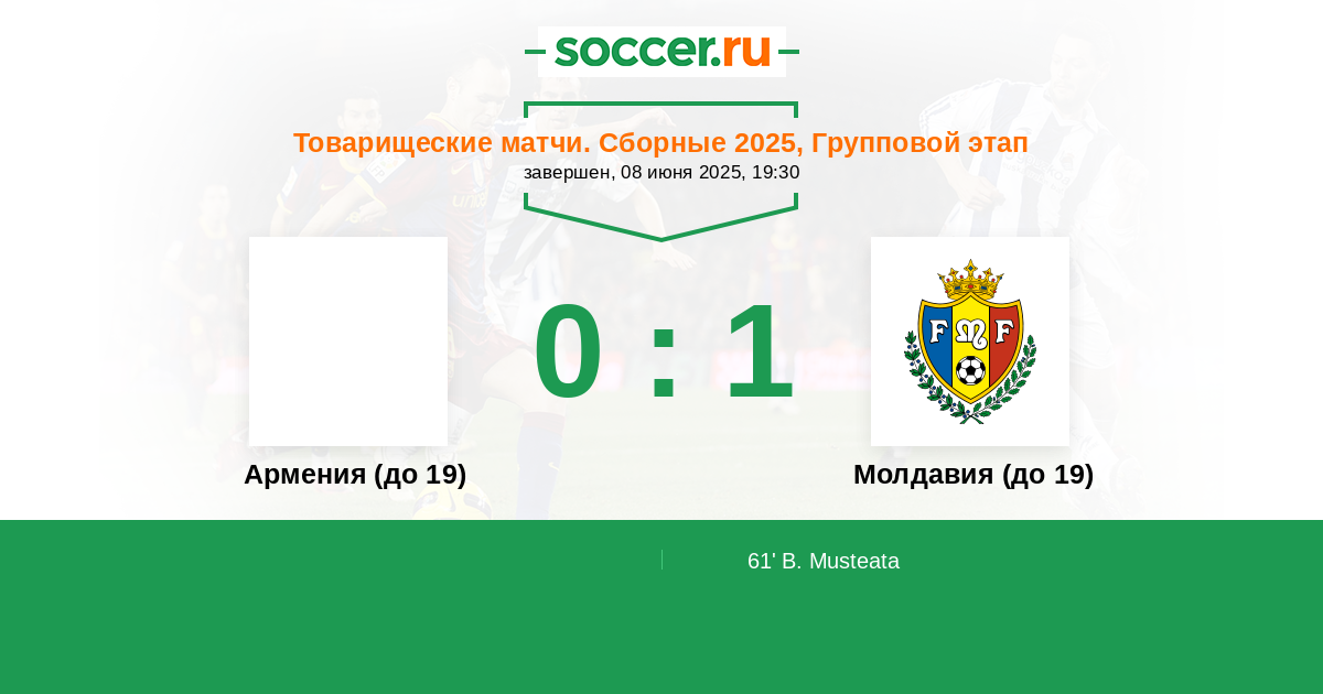 Протокол матча Армения (до 19) против Молдавия (до 19)