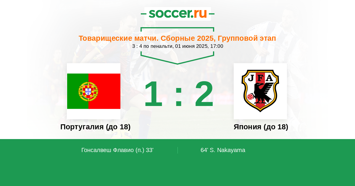 Протокол матча Португалия (до 18) против Япония (до 18)