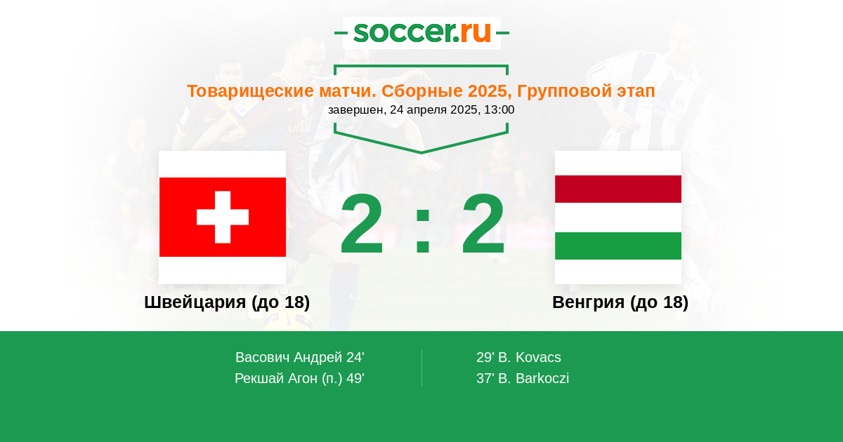 Протокол матча Швейцария (до 18) против Венгрия (до 18)