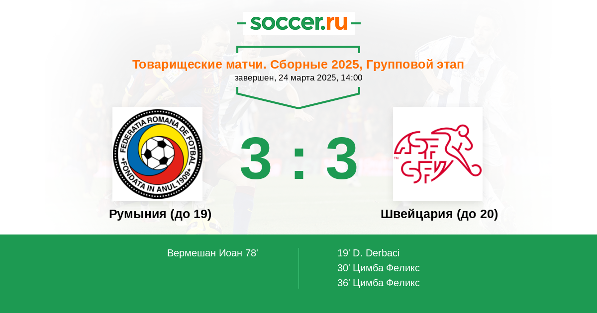 Протокол матча Румыния (до 19) против Швейцария (до 20)