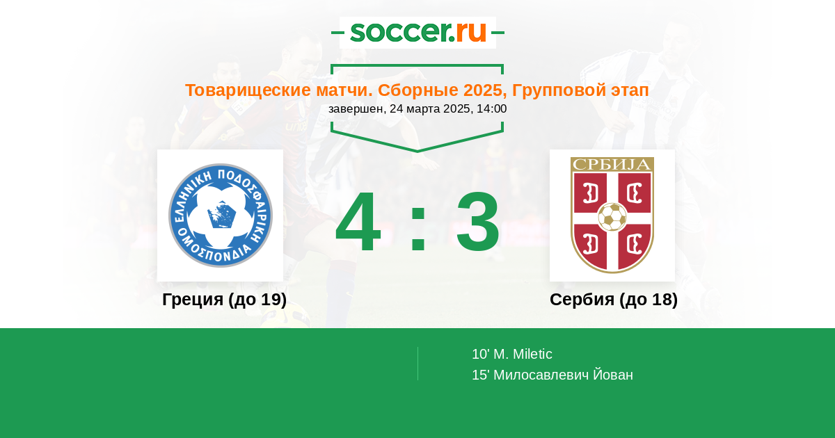 Протокол матча Греция (до 19) против Сербия (до 18)