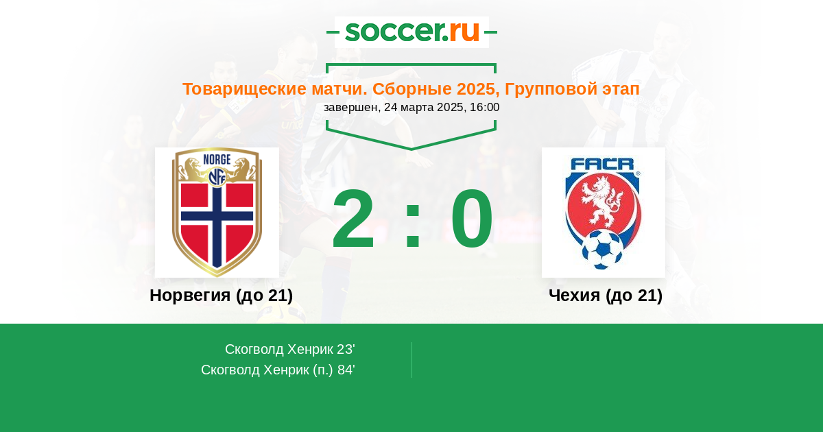 Протокол матча Норвегия (до 21) против Чехия (до 21)