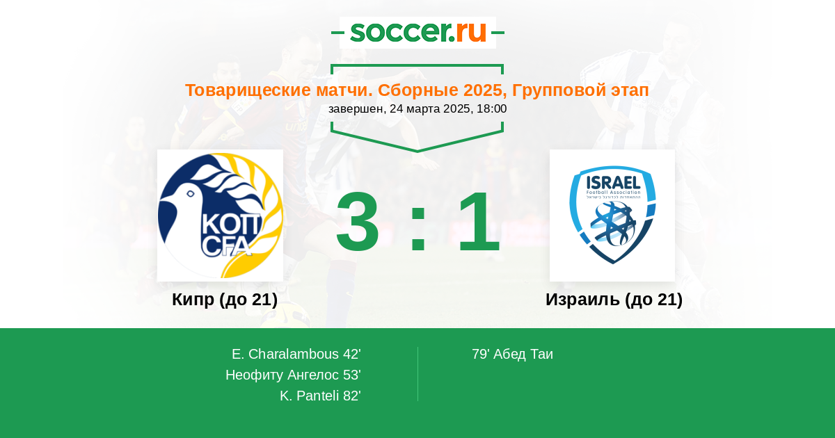 Протокол матча Кипр (до 21) против Израиль (до 21)
