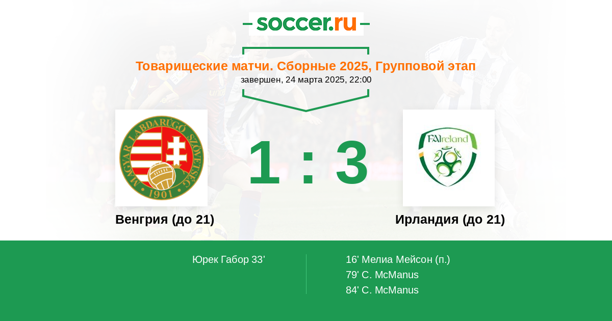 Протокол матча Венгрия (до 21) против Ирландия (до 21)