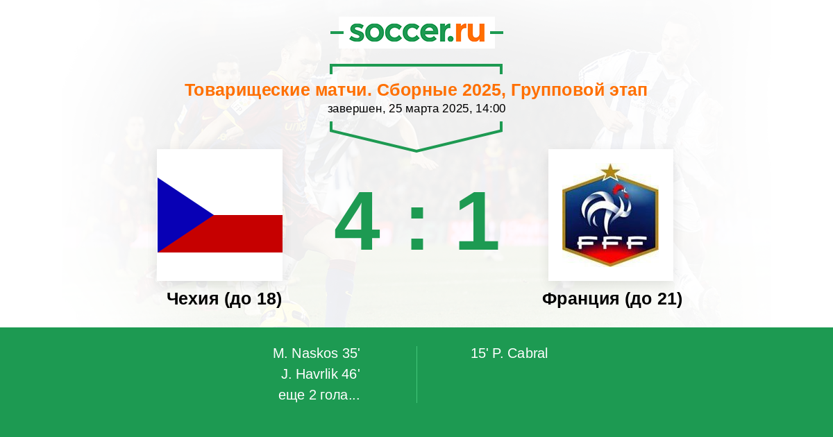 Протокол матча Чехия (до 18) против Франция (до 21)