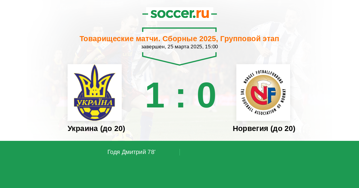 Протокол матча Украина (до 20) против Норвегия (до 20)