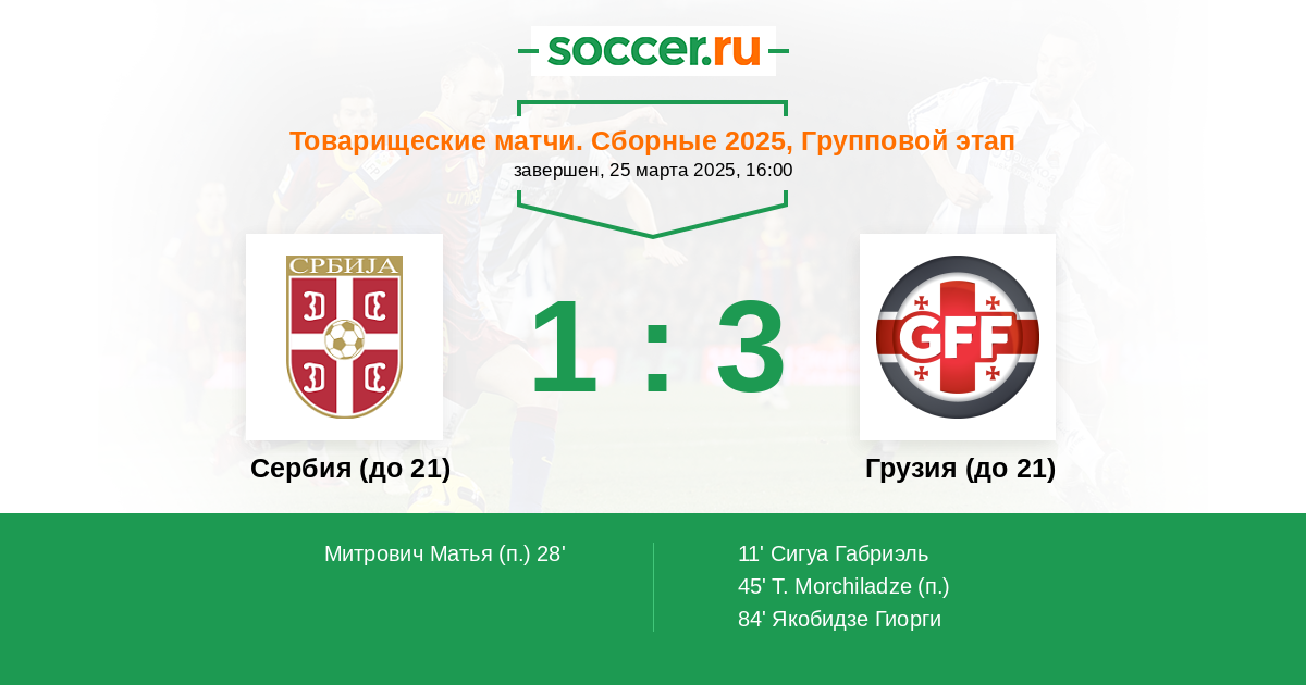 Протокол матча Сербия (до 21) против Грузия (до 21)